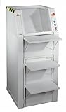 Paper Shredder - Feed Width: 17", Shred Size: 1/8" x 3 1/8", Sheet Capacity: 65 - 85, Speed: 42 FPM, Motor: 5.2 HP, 208v, Waste Capacity: 50 gal. Crosscut Paper Shredder. High capacity paper shredder with large hopper feed. Bag full indicator, auto reverse anti-jam feature. All steel construction, three fold-away work shelves and large 50 gallon roll out waste bin. Heavy duty castors for easy placement. Lifetime warranty on cutters. Dimensions (h x w x d): 63" x 29" x 24" Shipping Weight: 835 lbs